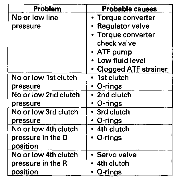 Home >> Honda >> 2005 >> Element 2WD L4-2.4L >> Repair and Diagnosis >> Powertrain Management >> Transmission Control Systems >> Testing and Inspection >> Component Tests and General Diagnostics >> Non-Trouble Code Procedures >> Pressure Tests