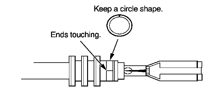 3. Strip the insulation off the end of the wire so the wire fits in the new terminal as shown. (If the wire has a wire seal, replace it with a new one from the kit.)