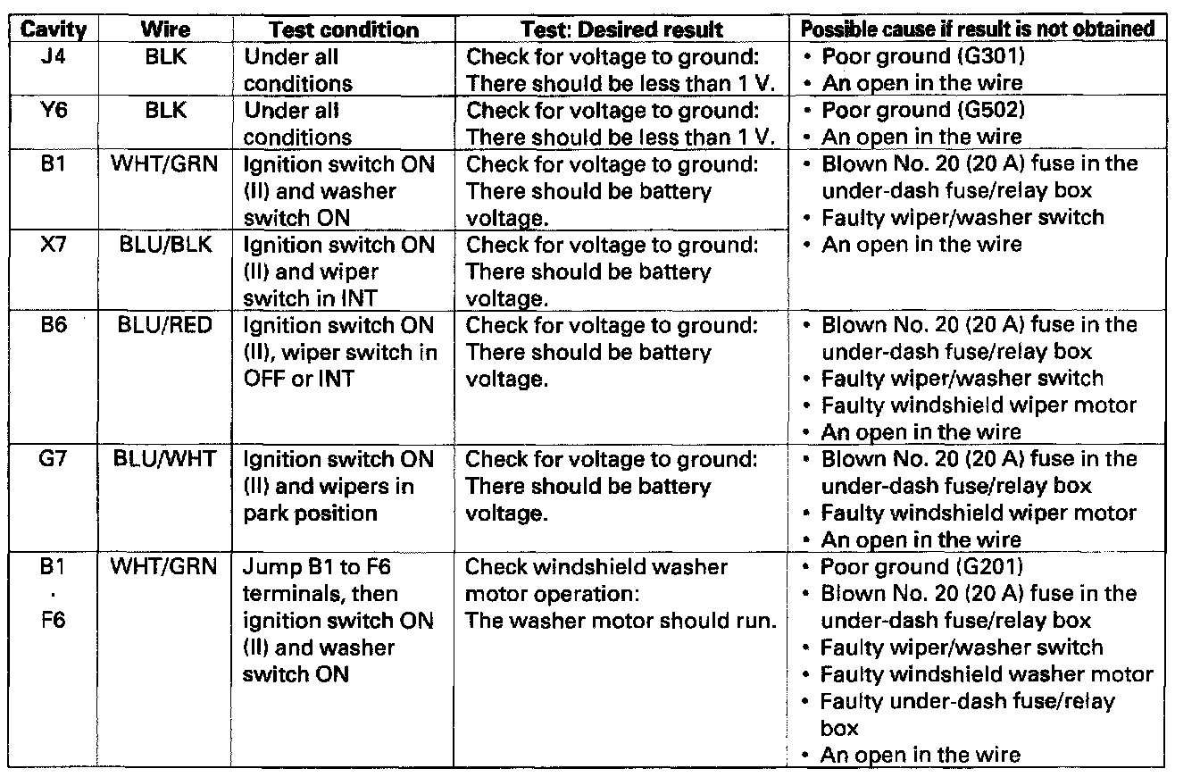 Home >> Honda >> 2005 >> Element 2WD L4-2.4L >> Repair and Diagnosis >> Wiper and Washer Systems >> Relays and Modules - Wiper and Washer Systems >> Wiper Control Module >> Testing and Inspection >> Control Unit Input Test