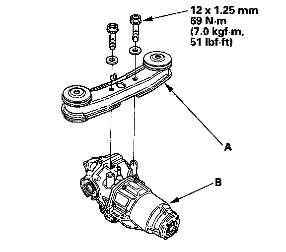 Install the rear differential mount assembly A to the rear differential assembly (B)