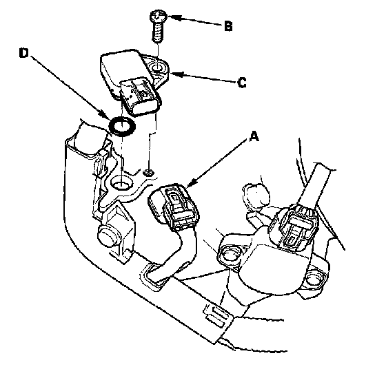 4. Install the sensor in the reverse order of removal with a new O-ring (D).