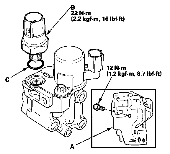 4. Install the switch in the reverse order of removal with a new O-ring (C).