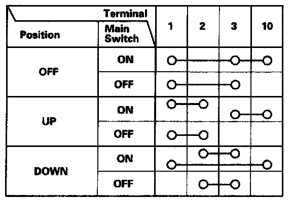 4. Check for continuity between the terminals in each switch position according to the tables.