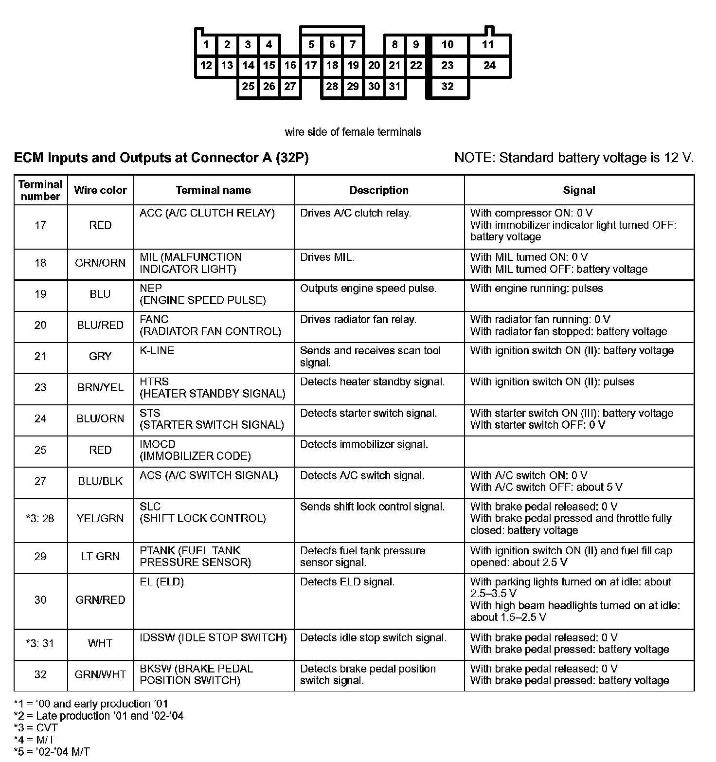 ECM Inputs and Outputs at Connector A (32P) Part 1: