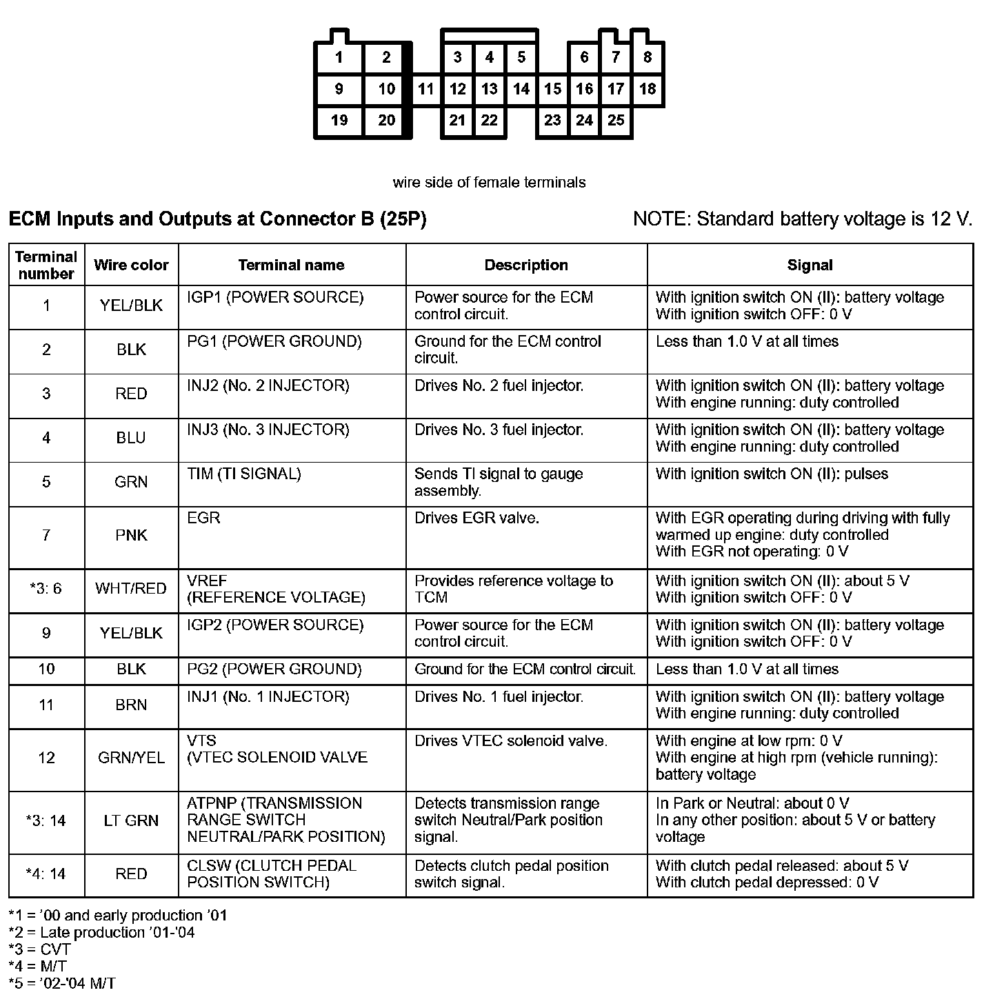 ECM Inputs and Outputs at Connector B (25P) Part 1: