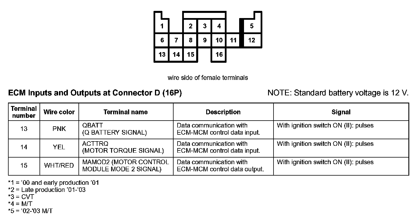 ECM Inputs and Outputs at Connector D (16P) Part 1: