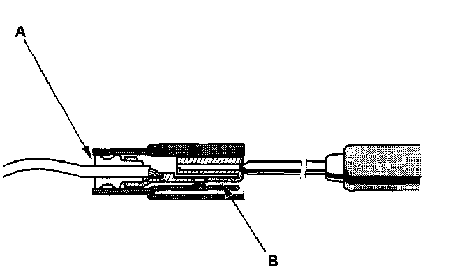 3. If you cannot get to the wire side of the connector or the wire side is sealed (A), disconnect the connector and probe the terminals (B) from the terminal side. Do not force the probe into the connector.