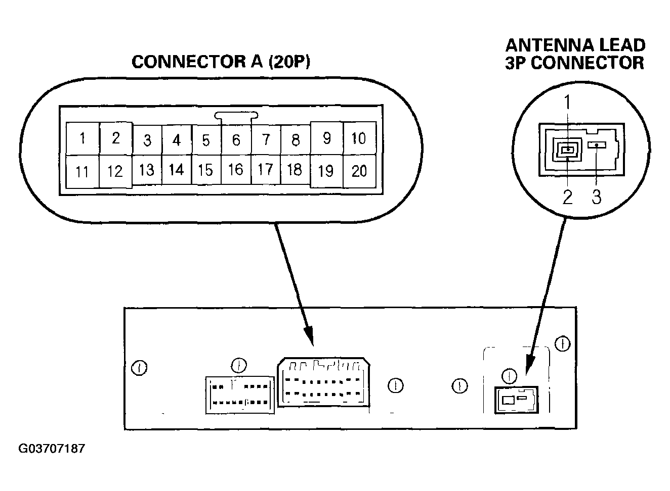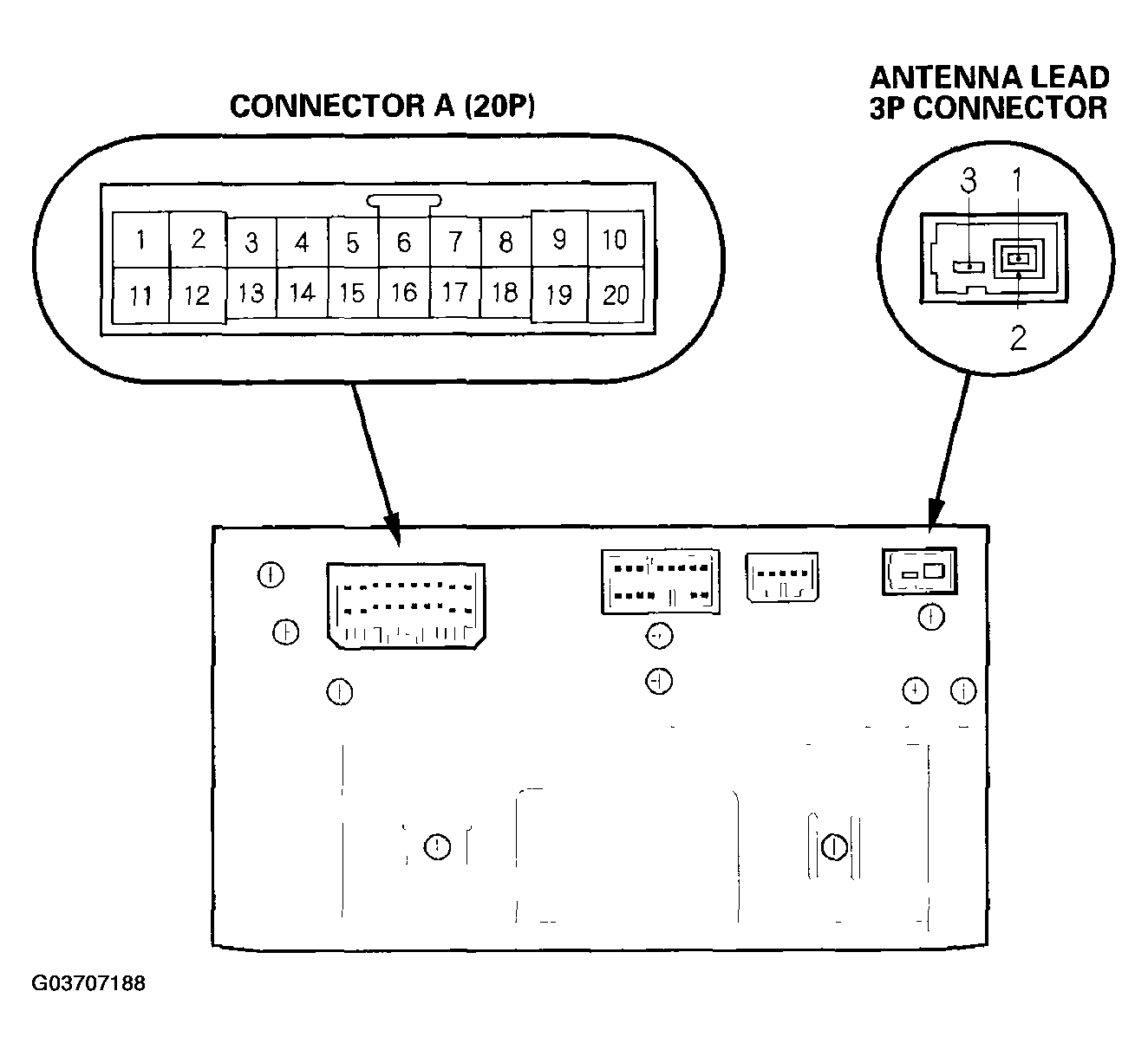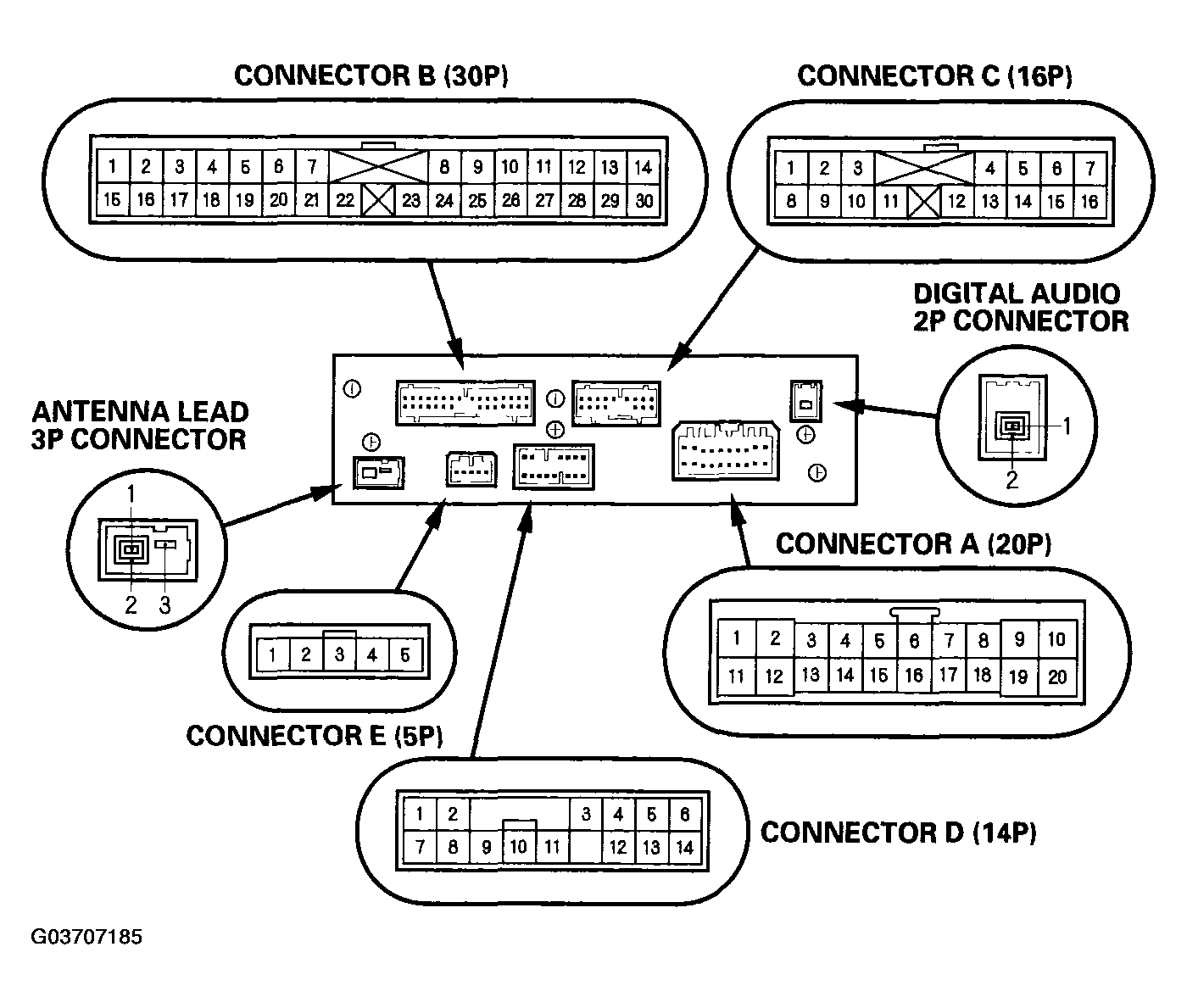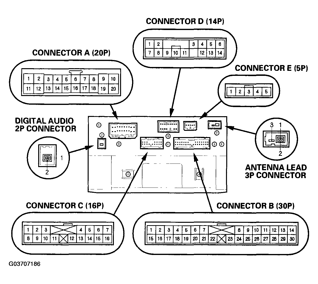 When replacing an audio unit connector, match the wires to the cavities listed in the table shown in Figure , with navigation/with entertainment system & Figure , without navigation/with rear entertainment system.
