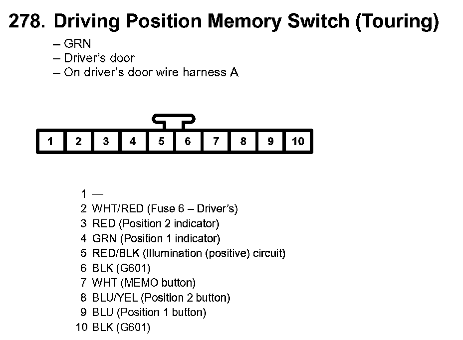 278. Driving Position Memory Switch (Touring):
