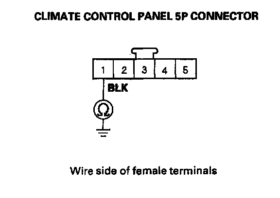 6. Check for continuity between the No. 1 terminal of the climate control panel 5P connector and body ground.