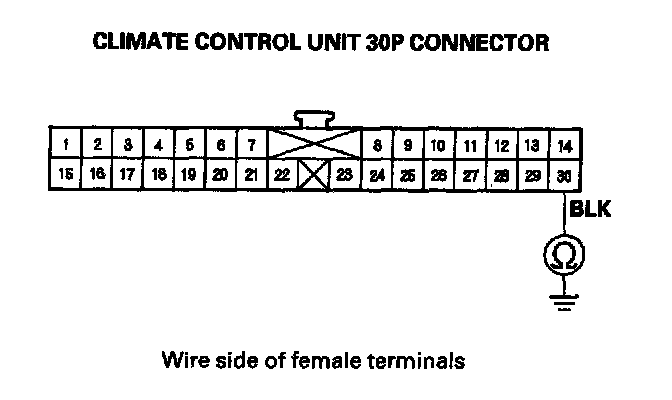 6. Check for continuity between the No. 30 terminal of the climate control unit 3OP connector and body ground.