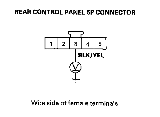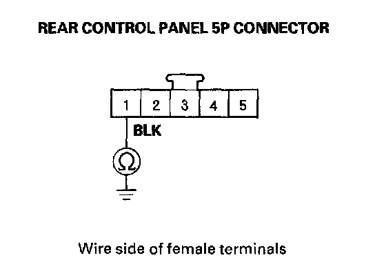 6. Check for continuity between the No. 1 terminal of the rear control panel 5P connector and body ground.