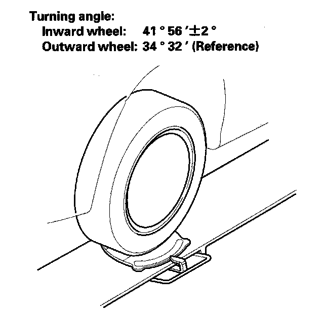 1. Turn the wheel right and left while applying the brake, and measure the turning angle of both wheels.