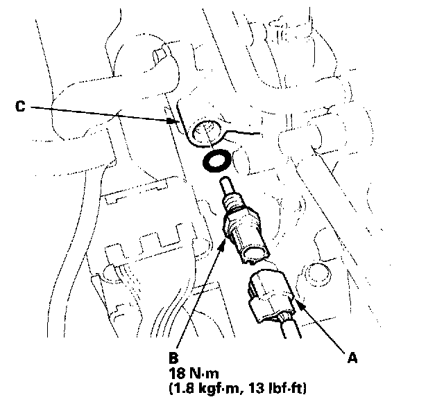 5. Install the sensor in the reverse order of removal with a new O-ring (C), then refill the radiator with engine coolant and bleed air from the cooling system with the heater valve open.