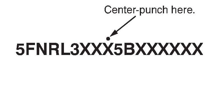 2. Center-punch a completion mark above the ninth character of the engine compartment VIN.