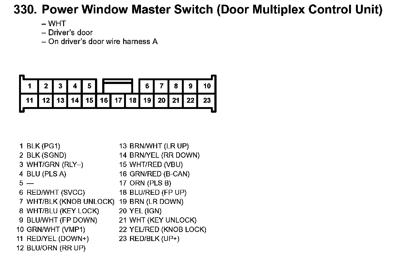 330. Power Window Master Switch (Door Multiplex Control Unit):