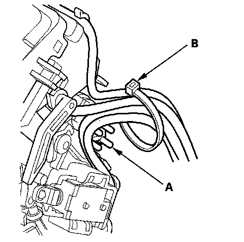 12. Route the harnesses along the harness guide (A), and tie the harnesses and guide with the new band (B).