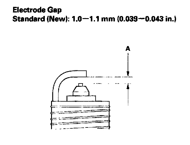 2. Do not adjust the gap (A) of iridium tip plugs; replace the spark plug if the gap is out of specification.