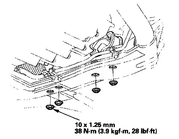 5. Place the transmission jack under the transmission, and remove the transmission lower mount nuts.