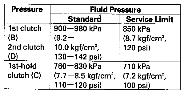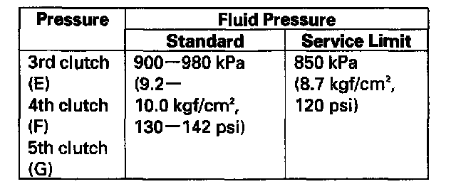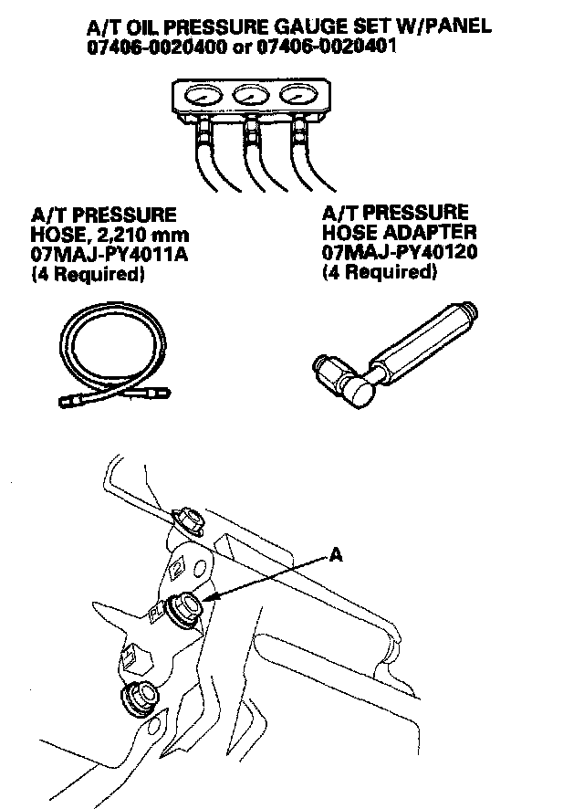 ^ A/T clutch pressure gauge set 07406-0020400 or 07406-0020401