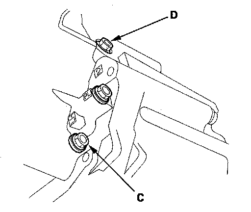 17. Connect the oil pressure gauges to the 1st-hold clutch pressure inspection hole (C) and the 2nd clutch pressure inspection hole (D).