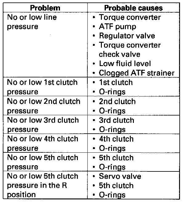 1. Before testing, be sure the transmission fluid is filled to the proper level.
