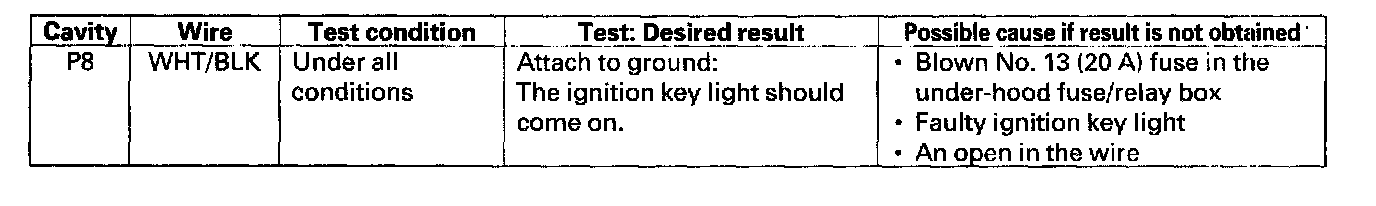 Control Unit Input TestNOTE: Before troubleshooting the reminder systems, key light timer, and engine oil pressure indicator system, troubleshoot the multiplex integrated control system first using B-CAN System Diagnosis Test Mode A.