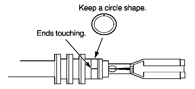 3. Strip the insulation off the end of the wire so the wire fits in the new terminal as shown. (If the wire has a wire seal, replace it with a new one from the kit.)