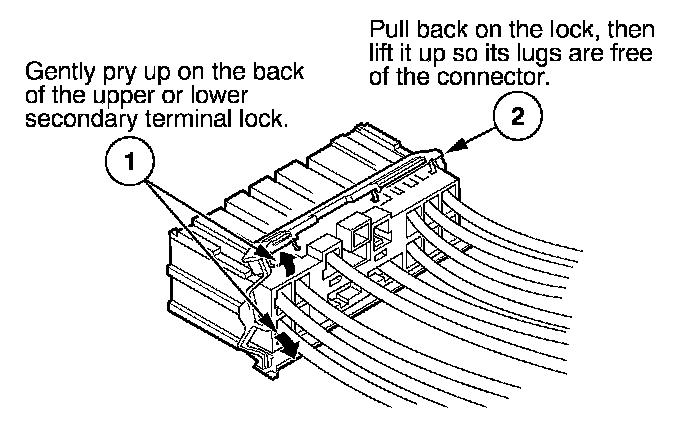 - If it has a secondary terminal lock, go to Connectors With a Secondary Lock. A secondary lock, found on most connectors on some models, is an additional locking device on the connector housing as a backup for the primary lock on the terminal.