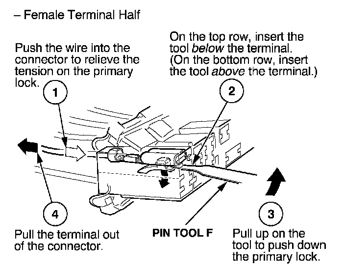 Home >> Honda >> 2005 >> Odyssey V6-3.5L >> Repair and Diagnosis >> Relays and Modules >> Relays and Modules - Powertrain Management >> Relays and Modules - Computers and Control Systems >> Engine Control Module >> Diagrams >> Diagnostic Aids >> Terminal Replacement Procedures >> How to Replace Connector Terminals