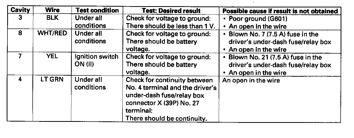 Home >> Honda >> 2005 >> Odyssey V6-3.5L >> Repair and Diagnosis >> Windows and Glass >> Windows >> Testing and Inspection >> Component Tests and General Diagnostics >> Component Tests >> Combination Switch Control Unit Input Test