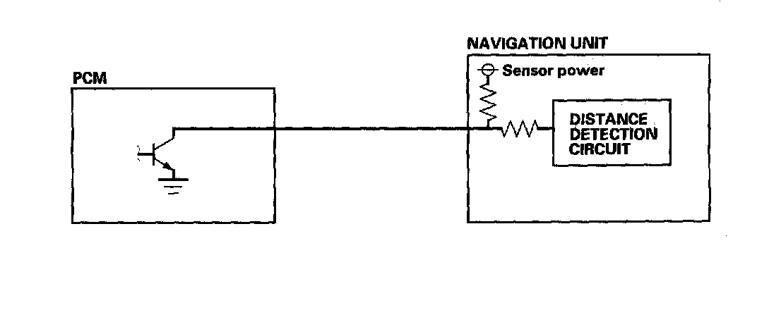 The navigation unit calculates the vehicle position (the driving direction and the current position) by receiving the directional change signals from the yaw rate sensor and the travel distance signals from the PCMs vehicle speed pulse (VSP) signal.