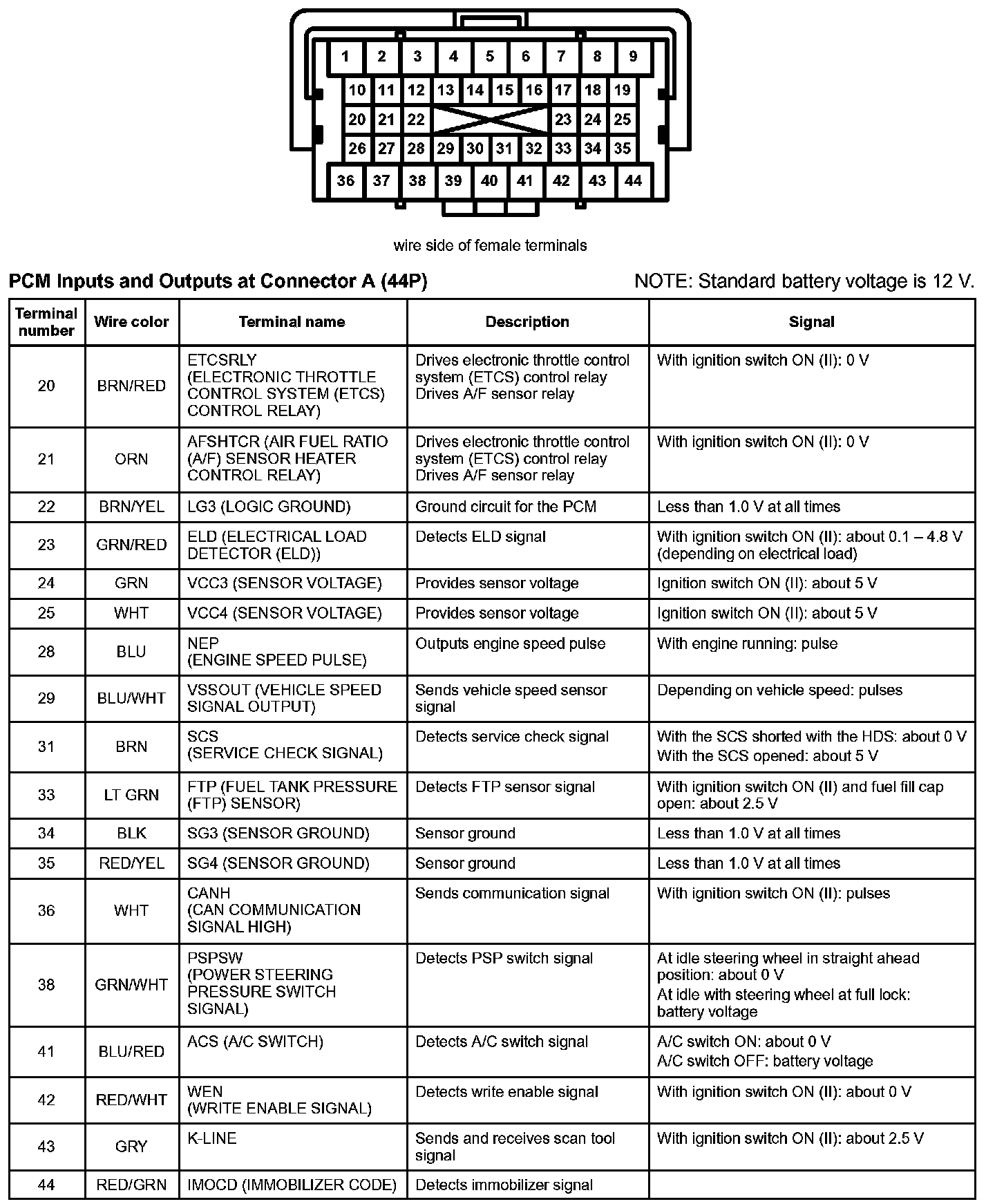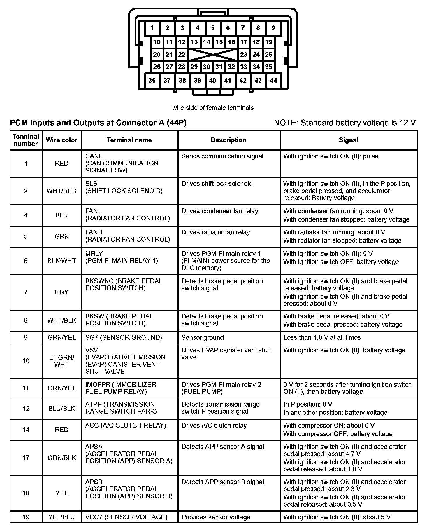 PCM Inputs And Outputs At Connector A (44P) Part 1:
