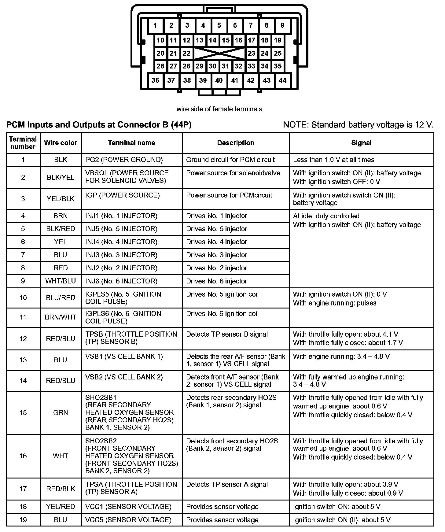 PCM Inputs And Outputs At Connector B (44P) Part 1: