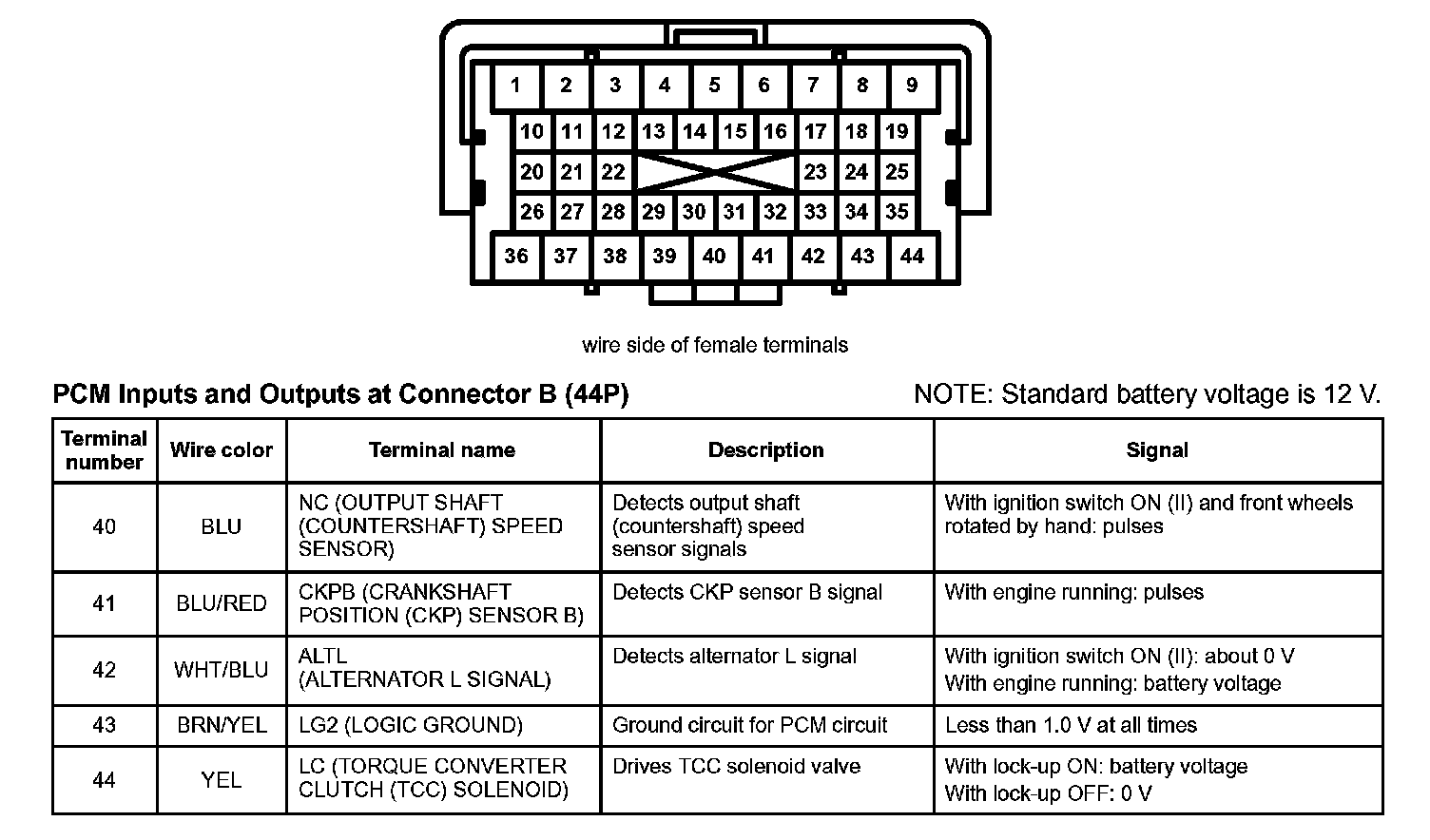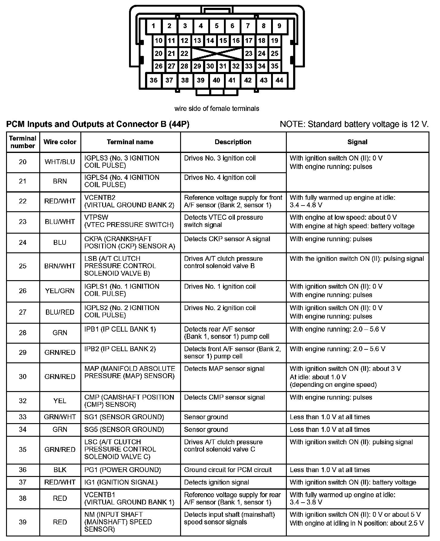 PCM Inputs And Outputs At Connector B (44P) Part 3: