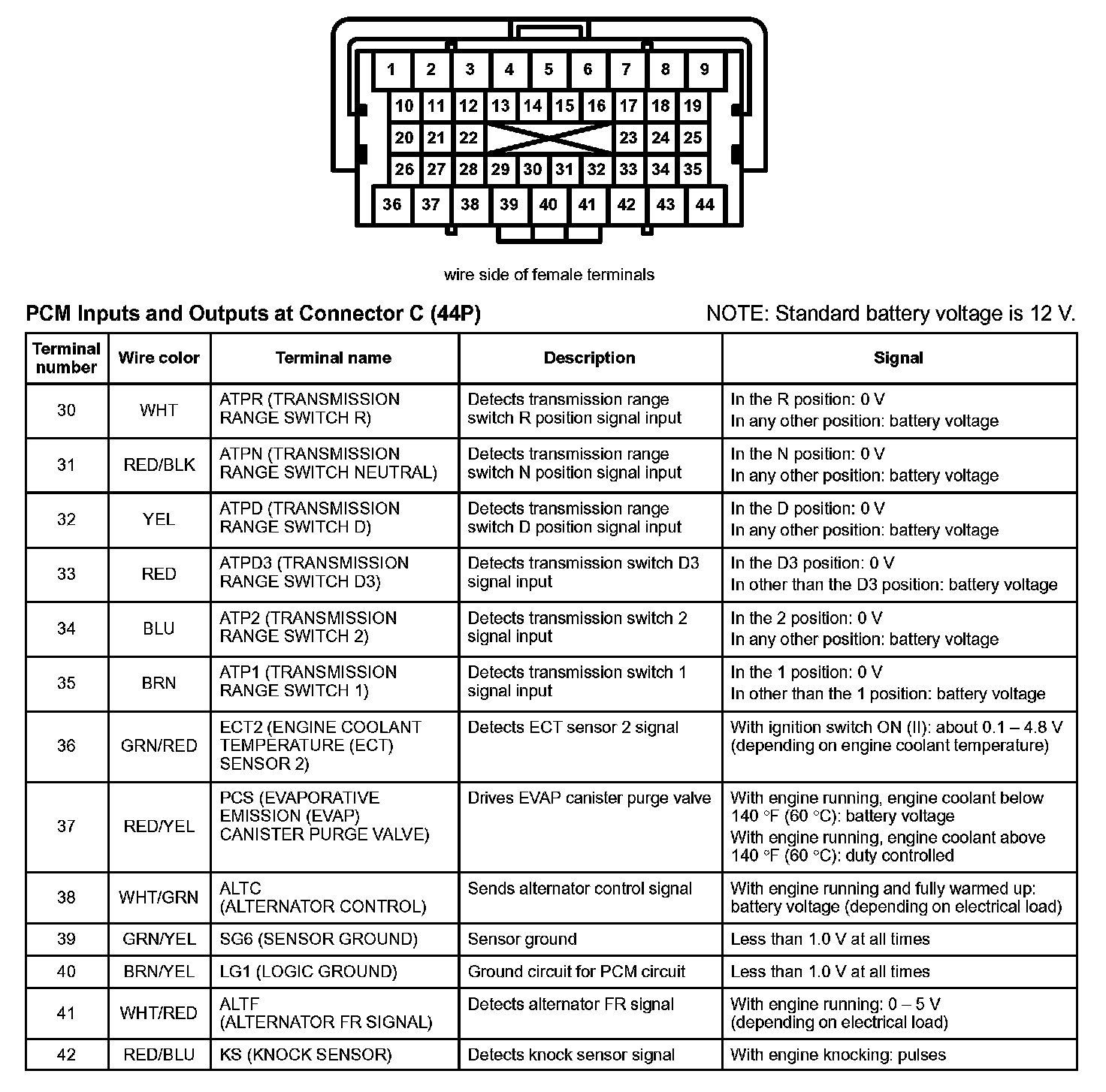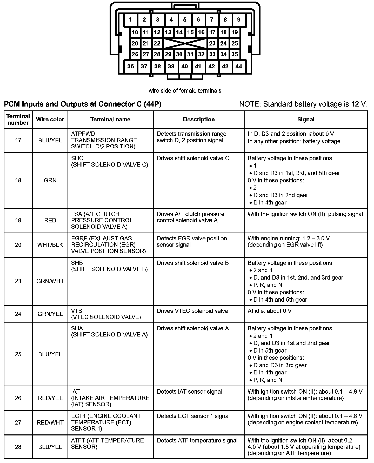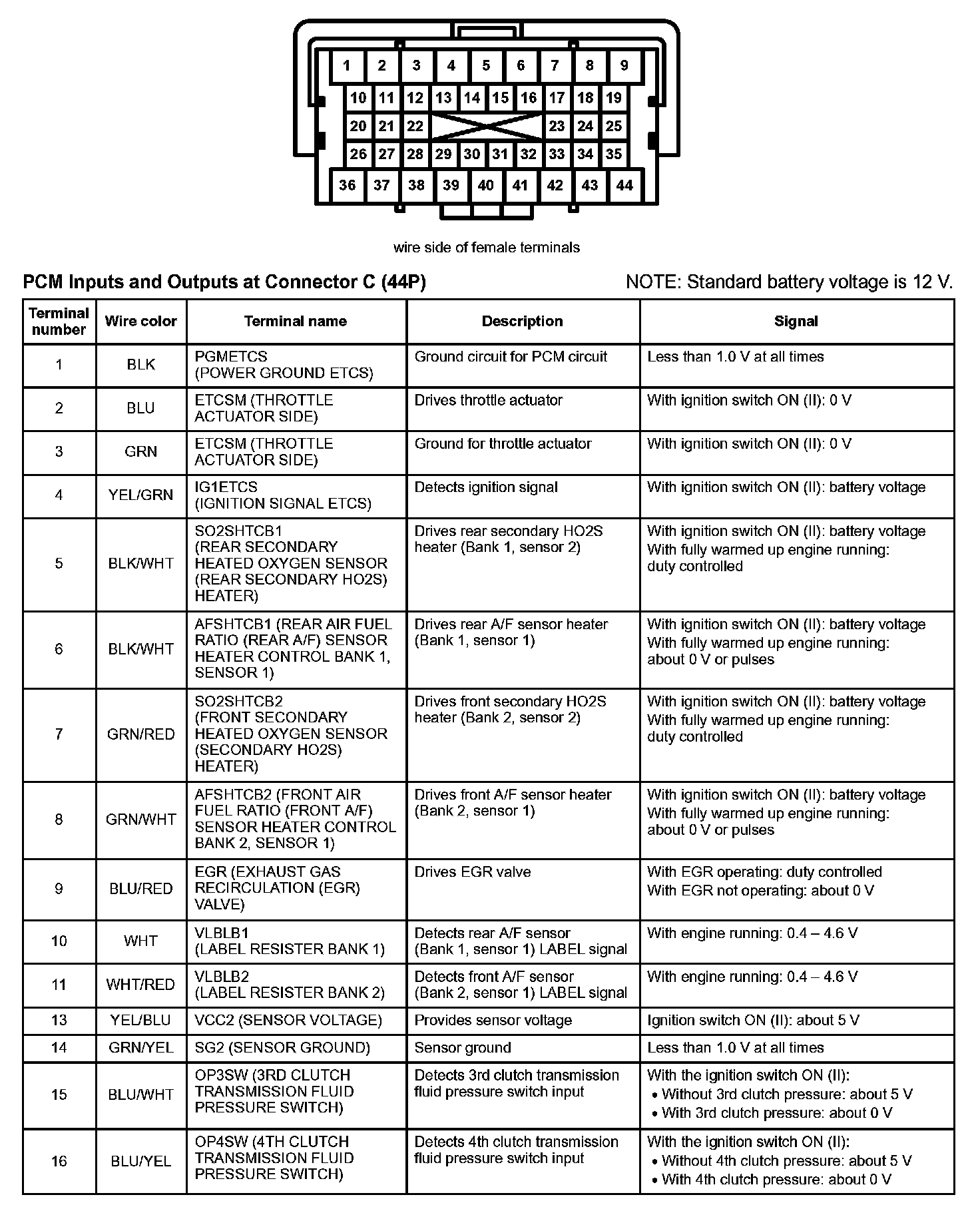 PCM Inputs And Outputs At Connector C (44P) Part 1: