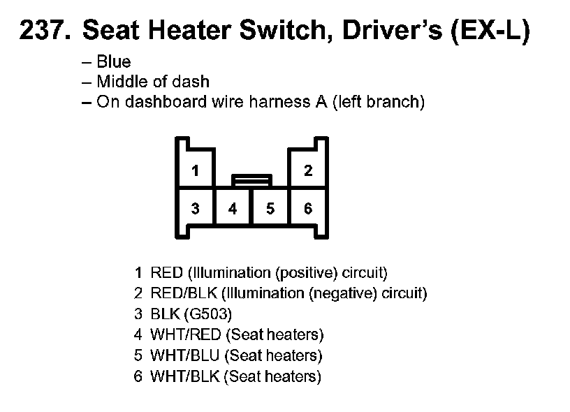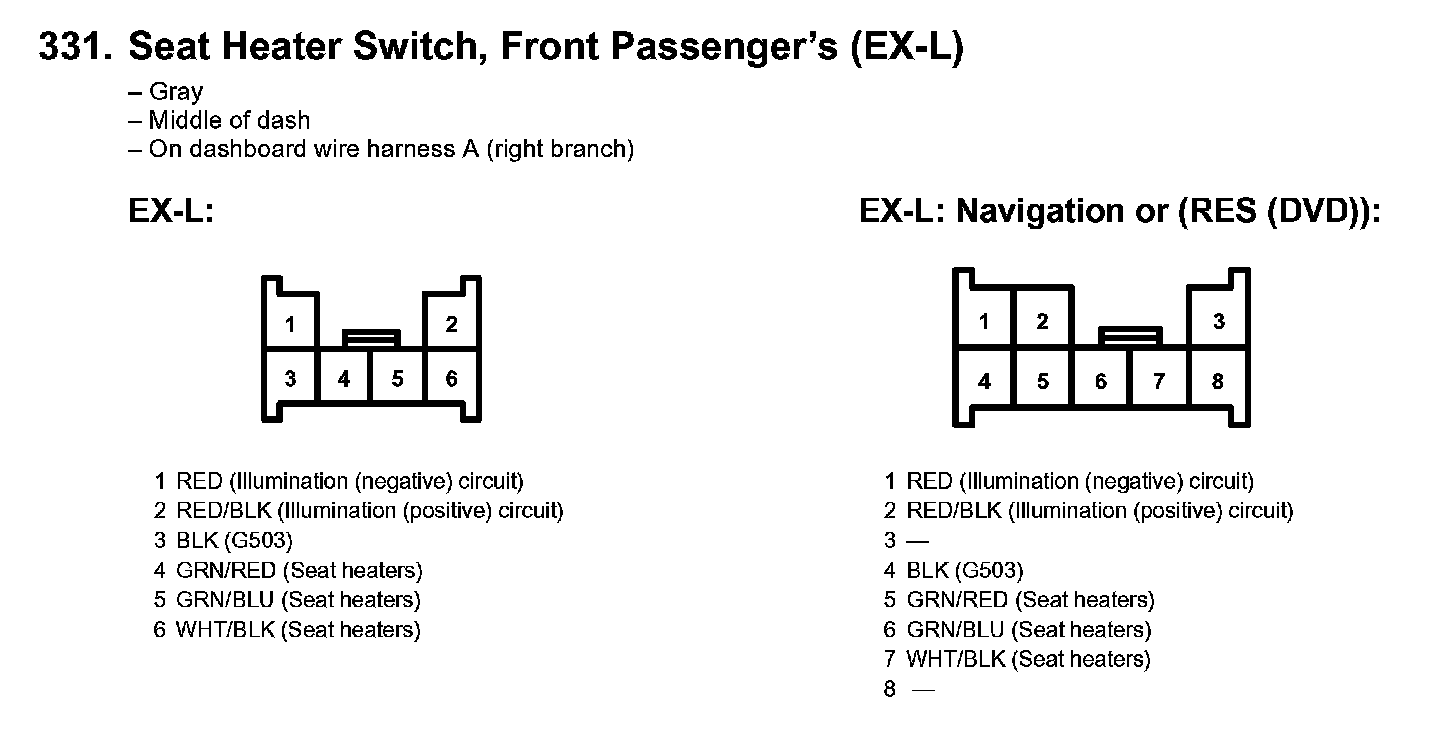 331. Seat Heater Switch, Front Passenger's (EX-L):