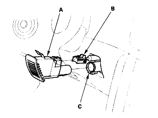 In-car Temperature Sensor Replacement1. Remove the in-car temperature sensor (A) from the dashboard, then disconnect the 2P connector (B) and the air hose (C). Be careful not to damage the sensor or the dashboard.