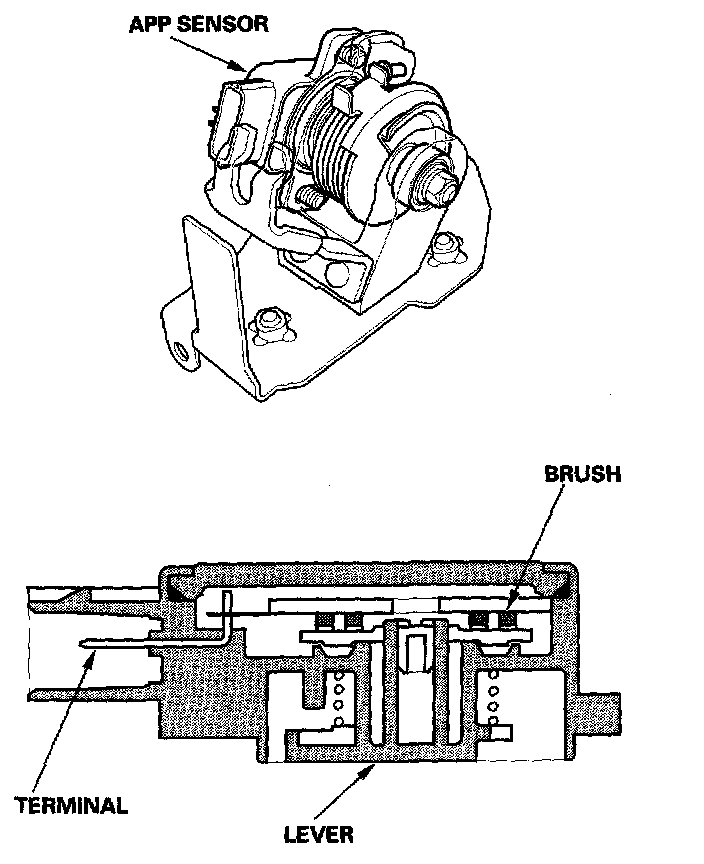 As the accelerator pedal position changes, the sensor varies the signal voltage to the PCM.