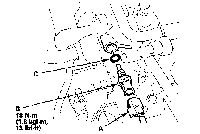 5. Install the sensor in the reverse order of removal with a new O-ring (C), then refill the radiator with engine coolant, and bleed air from the cooling system with the heater valve open.
