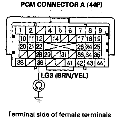 18. Disconnect PCM connector A (44P).