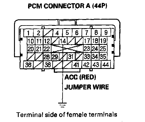 13. Momentarily connect PCM connector Terminal A14 to body ground with a jumper wire several times.