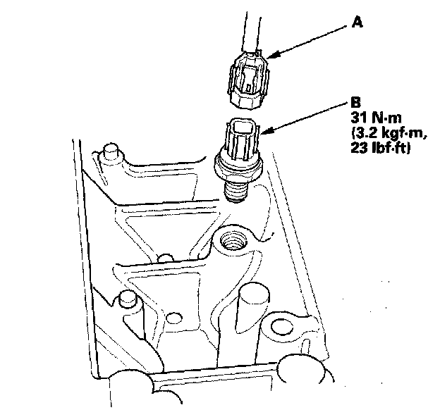 3. Disconnect the knock sensor 1P connector (A), then remove the knock sensor (B).