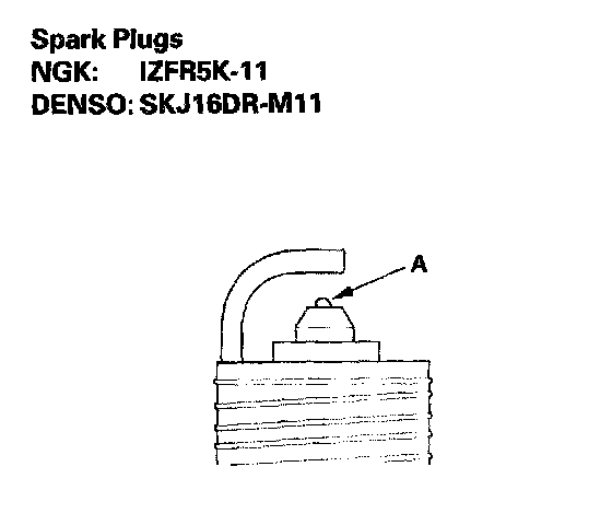 2. Do not adjust the gap (A) of iridium tip plugs. replace the spark plug if the gap is out of specification.