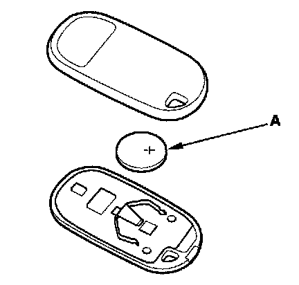 3. Replace the transmitter battery (A) with a new one, and try to lock and unlock the doors with the transmitter by pressing the lock or unlock button five or six times.