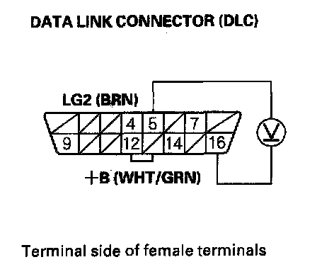 3. Measure voltage between DLC terminals No. 5 and No.16.