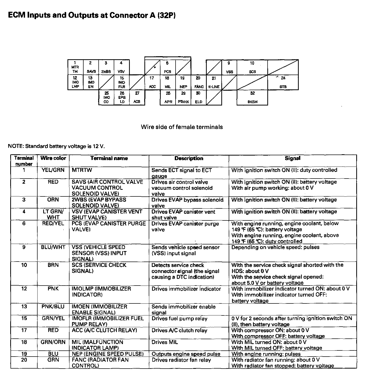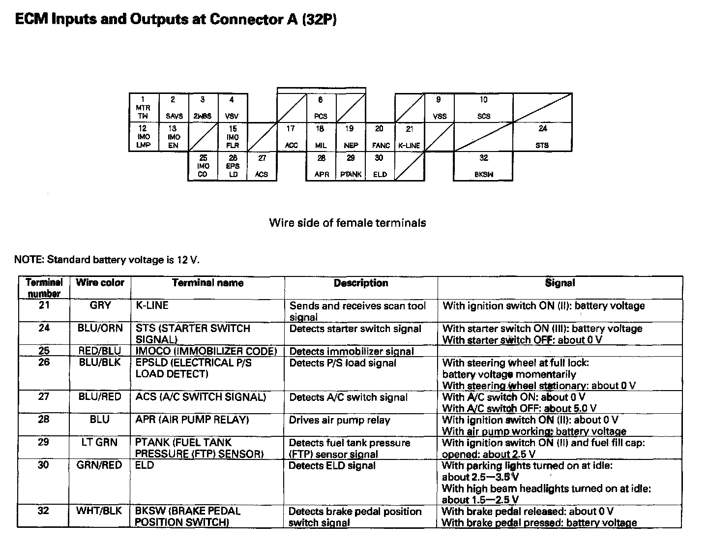 ECM Inputs And Outputs At Connector A (32P):