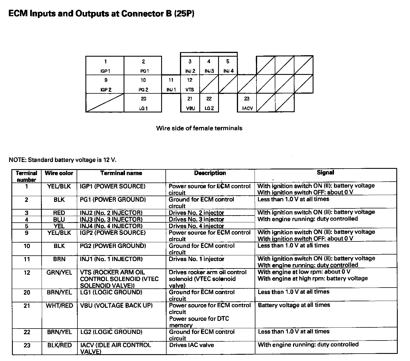 ECM Inputs And Outputs At Connector B (25P):