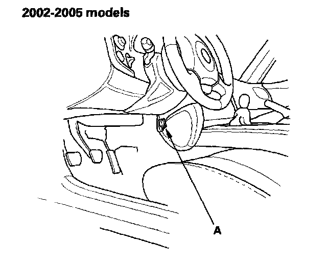 1. Connect the HDS or an OBD II scan tool to the data link connector (DLC) (A). On 2000-2001 models, the DLC is under the passenger's side of the dashboard. On 2002-2005 models, the DLC is behind the driver's side of the front console.
