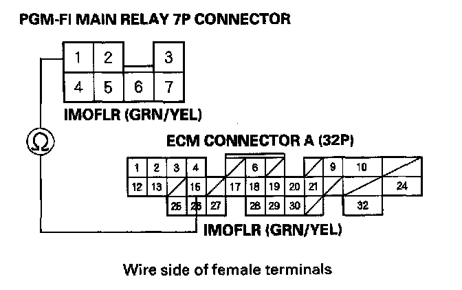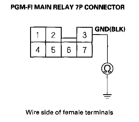 2. Check for continuity between body ground and PGM-FI main relay 7P connector terminal No. 3.